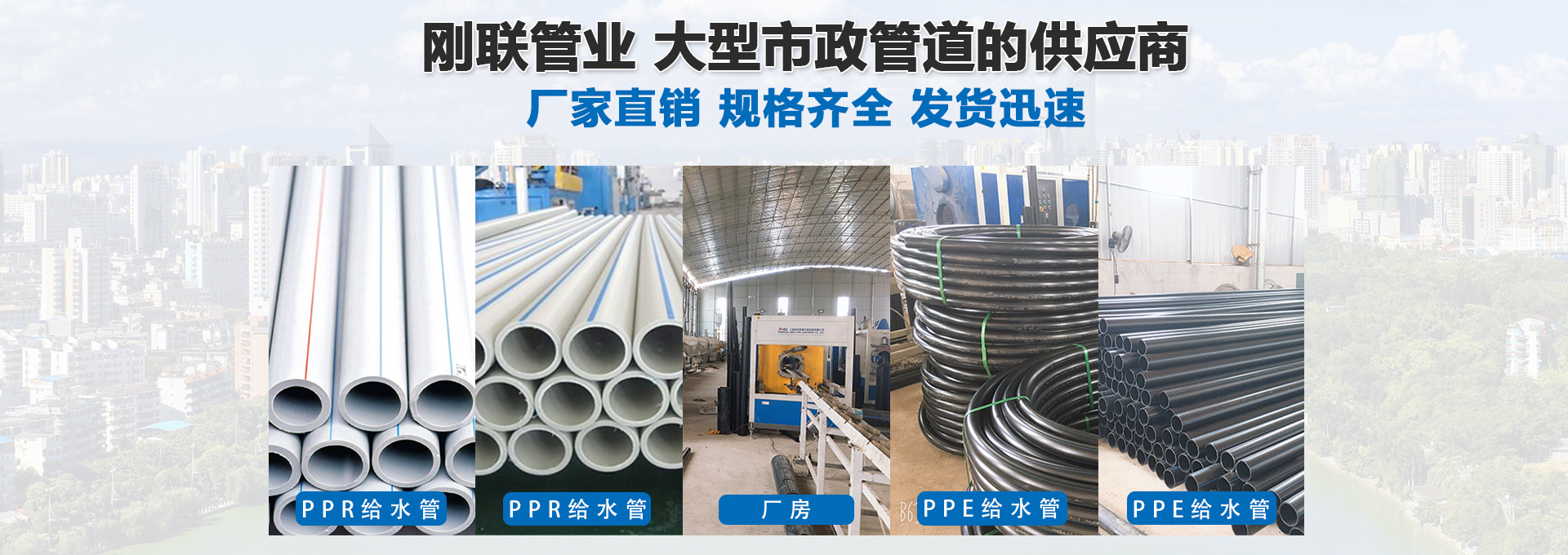 廣西南寧市剛聯管材有限公司是一家專業從事制造銷售市政工程管道,水利工程管道,房建工程管道,農用灌溉管道.已有十五年經驗,企業主要生產產品有:PPE100級給水管、PP-R給水管等。